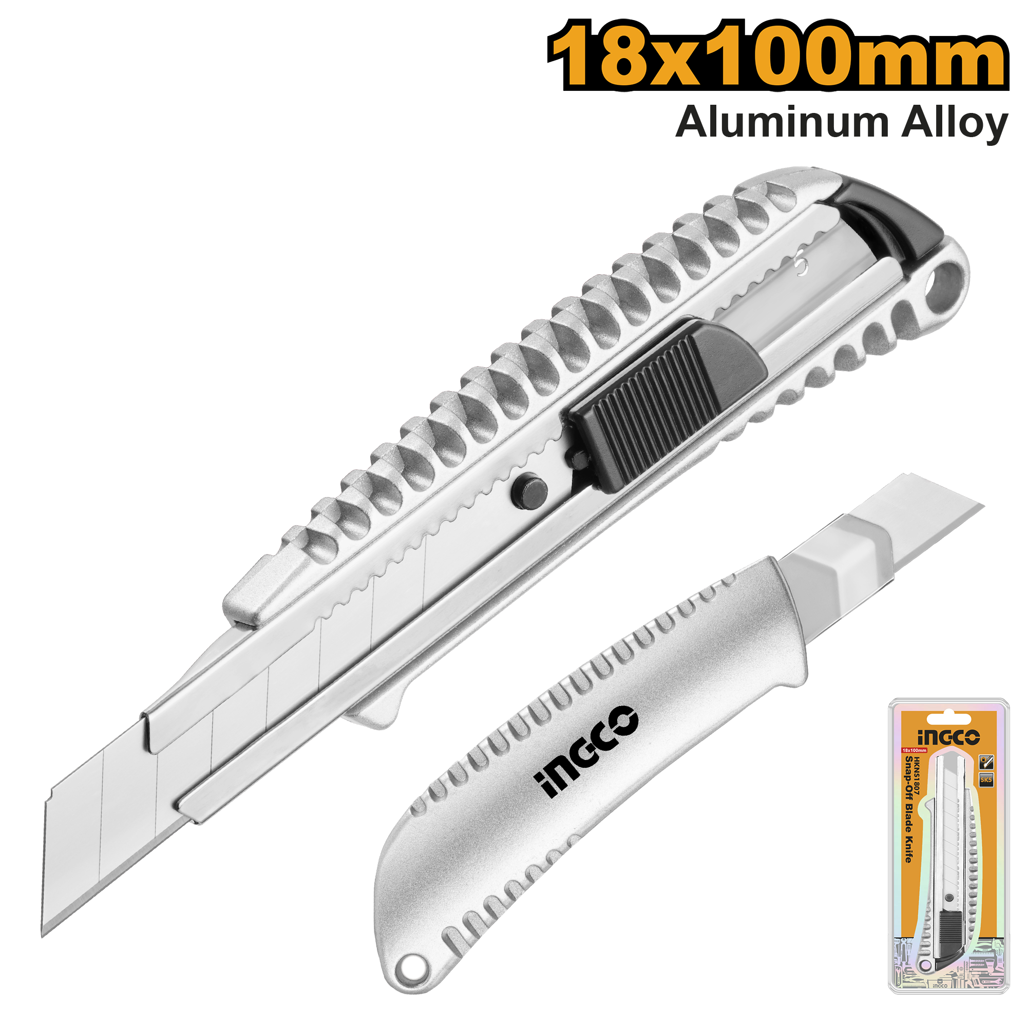 Snap-off blade knife SK5 18*100mm Zinc alloy body مشرط يد ستانلس سحب مع مخزن داخلي ل5 شفرات قفل تلقائي