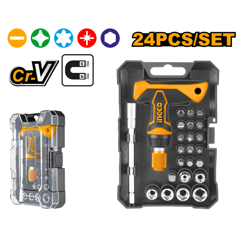 24PCS T-handle wrench screwdriver set Magnetized طقم مفك براغي رانتش مقبض تي 24 قطعة
